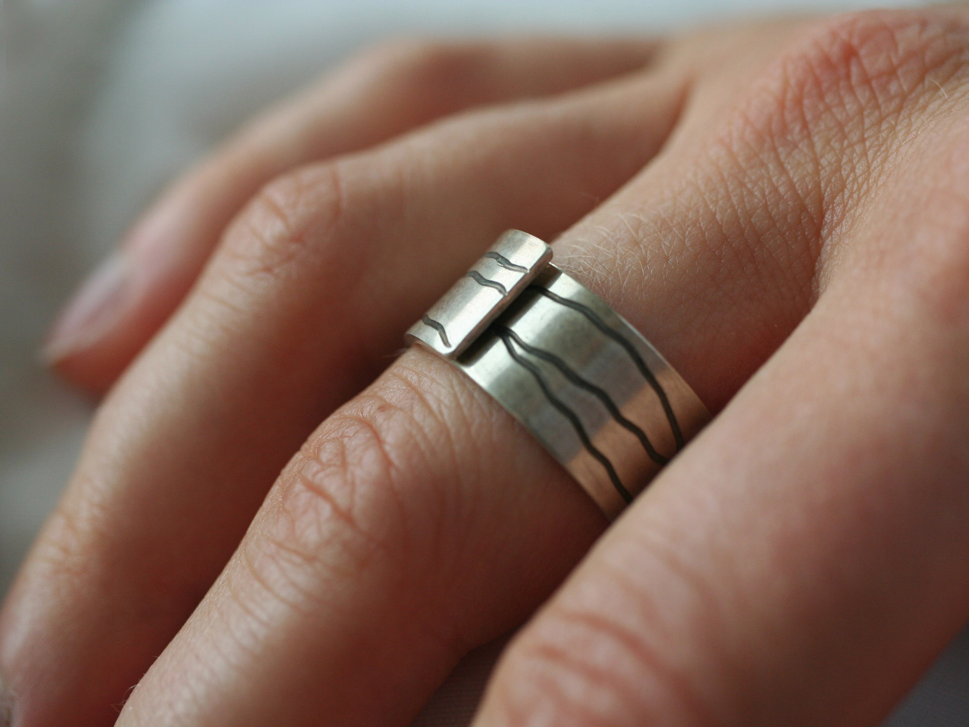 Material: Silber, 925, geschwärzt, Oberfläche mattiert