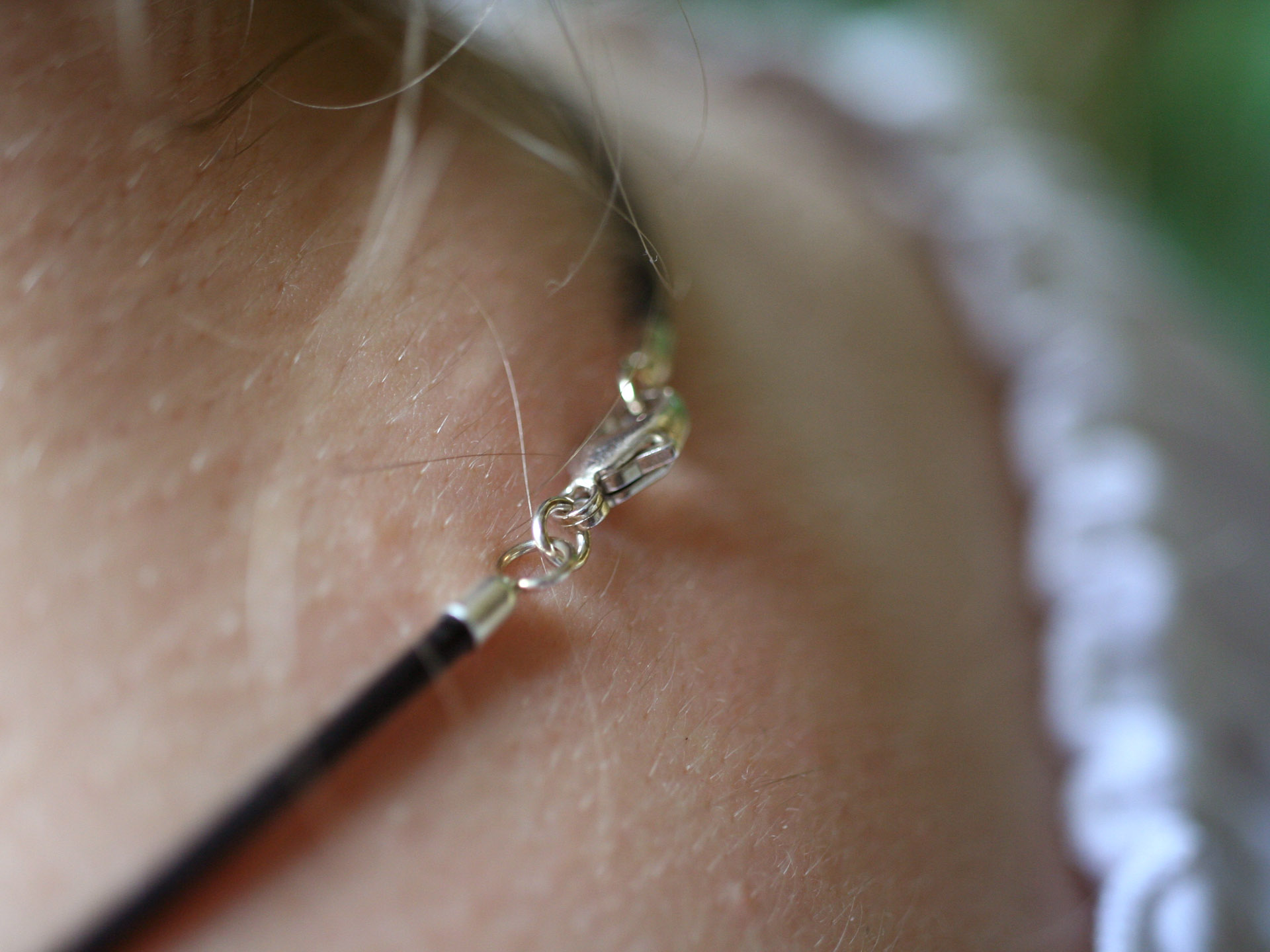 • Halsschmuck (ca. 2,3*2,3cm) mit Kautschukreif und Karabiner-Verschluß